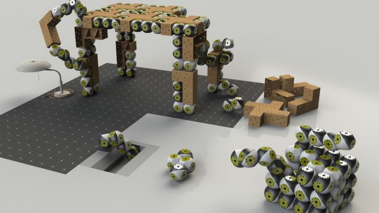 Roombot дуже простий (і відносно дешевий) модульний робот з купою сполучних елементів і шарнірним кріпленням в центрі. Сам по собі він мало на що придатний, але коли їх багато, вони можуть автоматично з'єднуватися і перетворюватися в різні меблі, рухатися кімнатою за командою власника, маніпулювати різними предметами і піднімати з підлоги речі.