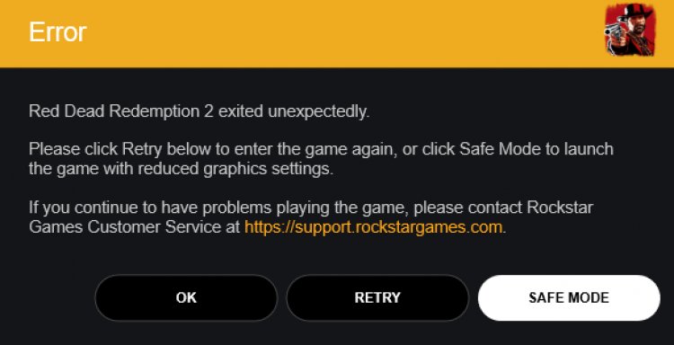 Сейчас одна из наиболее распространенных ошибок — выскакивающее после запуска окно «Red Dead Redemption 2 exited unexpectedly» (Игра вылетела по непредвиденной причине). По словам пользователей, игра вылетает даже в «безопасном режиме» для запуска со сниженными настройками графики.