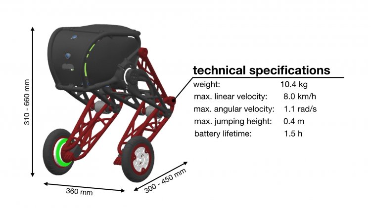Отметим, что Ascento — это двуногий колесный робот, совмещающий в себе преимущества двух типов роботов. Он стоит на двух больших колесах, но с корпусом их соединяют трехсекционные ноги. Робот поддерживает баланс и маневрирует с помощью четырех моторов: два из них располагаются в колесах, а еще два установлены в соединении ноги с корпусом. Ноги Ascento независимы друг от друга и могут распрямляться или сгибаться по отдельности. Основную часть работы по поддержанию ног в стабильном полусогнутом положении выполняют торсионные пружины, установленные в соединении двух основных сегментов ног.
